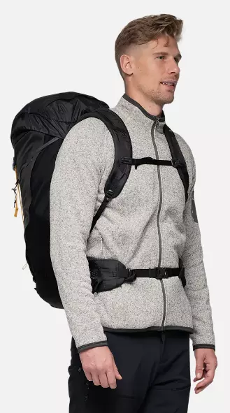 Til denne femte generasjonen av Helium-ryggsekken har Bergans virkelig lagt seg i selen for å utvikle sitt eget spesialmateriale av høykvalitets Nylon 66 og Black Dyneema® ripstop. Resultatet er et utrolig robust og slitesterkt materiale. Selv om sekken er ultralett, er det ikke kompromisset med bærekomforten. Kombinasjonen av justerbar rygglengde, skulderrem med Triple Density-skum og et formsydd hoftebelte gir en behagelig bæreopplevelse. Vekten er fortsatt blant de laveste sammenlignet med andre ryggsekker i samme størrelse og med samme bærekomfort. Helium V5 55 er dessuten designet slik at den kan gjøres om til en enklere og mye lettere versjon av seg selv. Hvis du vil bære virkelig lett, kan du ta av hoftebeltet og lokket og kombinere dem til en hoftesekk. Smart og enkelt! En annen forskjell sammenlignet med tidligere versjoner er den hele, diagonale glidelåsåpningen som gir deg superenkel tilgang til innholdet. Ellers er Helium fra Bergans fortsatt den samme allsidige og svært funksjonelle friluftssekken den alltid har vært gjennom sin 20 år lange karriere. Bæresystem: Bergans QuickAdjust™ PRO, justerbar rygglengde. Justerbare toppstrammere. Myk, behagelig og ventilerende air mesh på skulderrem og hoftebelte. Skulderrem vattert med Dual Density-skum. Lommer: Store, åpne sidelommer i mesh. Stor utvendig lomme på topplokket. Sekkepose: Den klassiske toppåpningen med snølås kombinert med diagonal glidelås foran gir enkel tilgang til innholdet. Doble kompresjonsremmer på hver side. Slitesterkt, komfortabelt og kraftig Nylon 66 materiale i kombinasjon med ripstop av Dyneema®, verdens letteste, sterkeste og mest allsidige fiber. Hoftebelte: Hoftebelte med god bevegelighet. Komfortabelt Dual Density-skum med Iliac Crest Relief. Justerbart hoftebelte med Pull Forward-system. Festepunkter for pulk. Stabiliserende stropper som bedrer stabiliteten ved at ryggsekken kan trekkes nærmere kroppen. Hoftebeltet er avtakbart (sparer 165 g vekt). Topplokk: Avtakbart topplokk (sparer 55 g vekt). Lokket er også høydejusterbart og har en stor utvendig lomme med nøkkelring. Hoftebeltet og lokket kan tas av og kombineres til en liten hoftesekk. Materiale: Nylon 66 with Dyneema® Ripstop Ytterligere detaljer: Klargjort for drikkesystem. Justerbar brystrem. Bærehåndtak på toppen. Nøkkelkrok. Rikelig med festepunkter til for eksempel ski, vandrestaver og isøks. Bergans PLUS Modular-festesystem. To multifunksjonelle PLUS-utstyrsremmer følger med ryggsekken. Kompatibel med dagtursekken 4703 Plus Daypack. Festepunkt for 4686 Hip Belt Pocket. YKK glidelåser. Produktet inneholder bluesign® approved fabrics and trimmings. Volum: 55 liter Maks rygglengde: 45 cm Min. rygglengde: 56 cm Makslengde hoftebelte: 140 Minimumslengde hoftebelte: 85 Maks anbefalt bærevekt: 15 kg Vekt: 980 g
